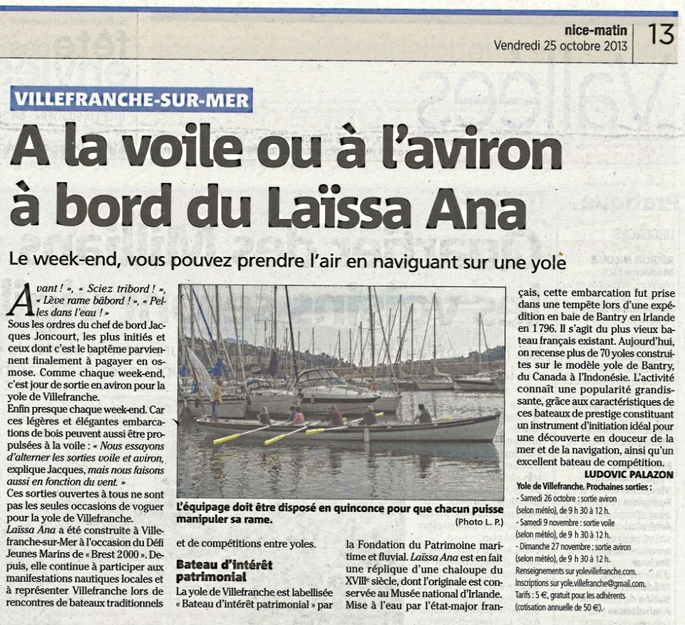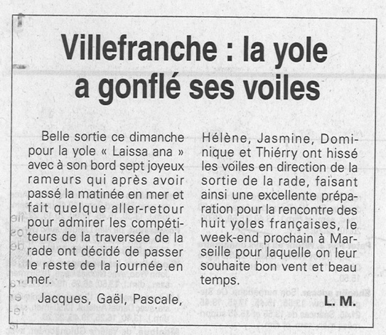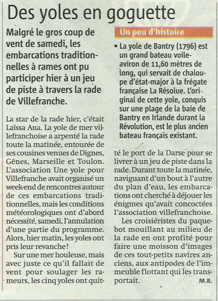 Une Yole pour Villefranche